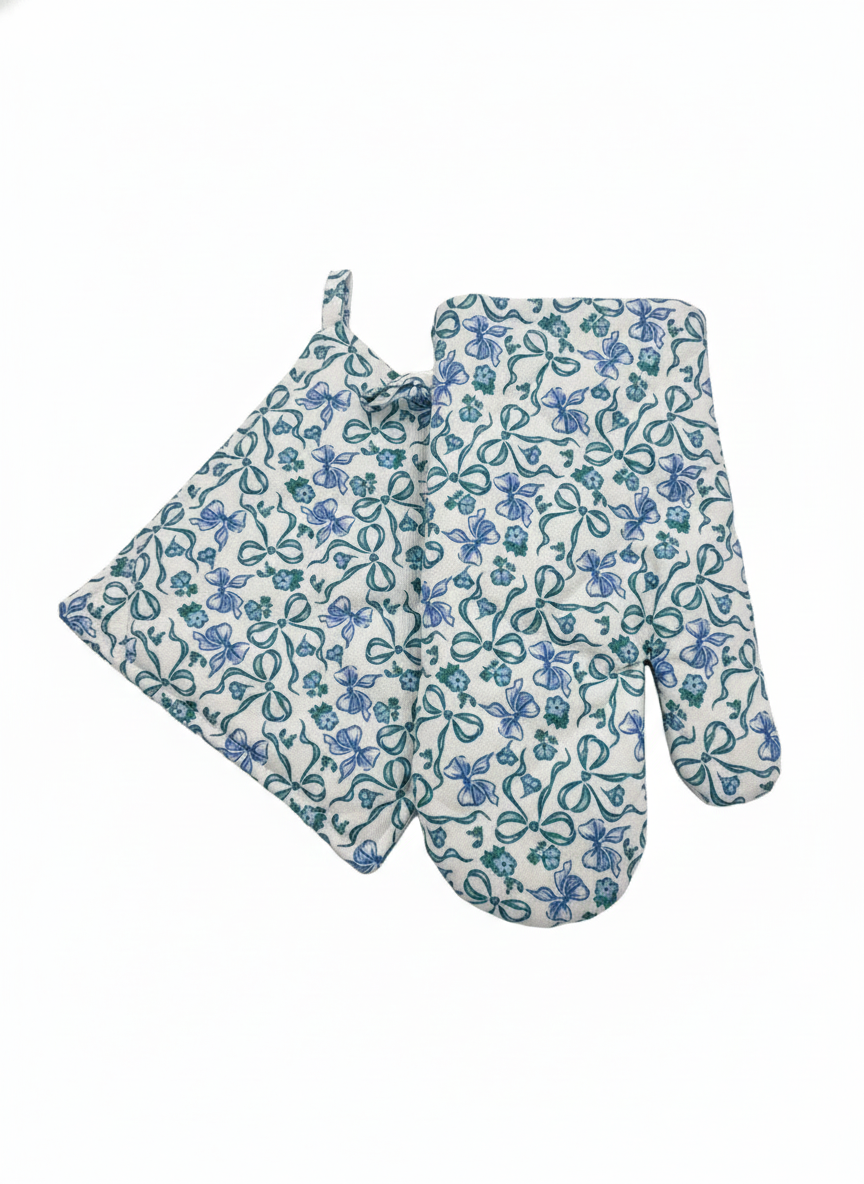 Mavi Beyaz El Yapımı Fırın Eldiveni