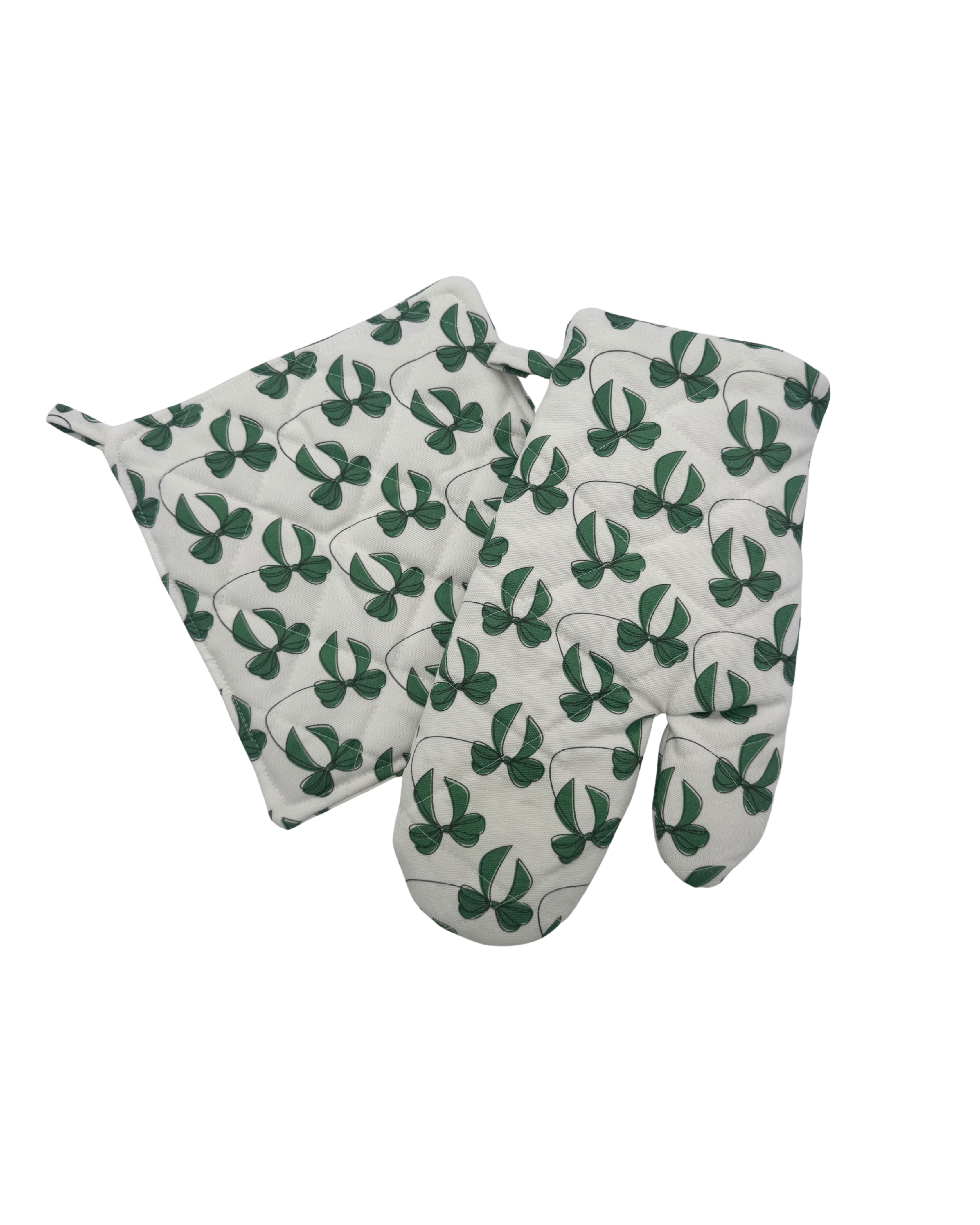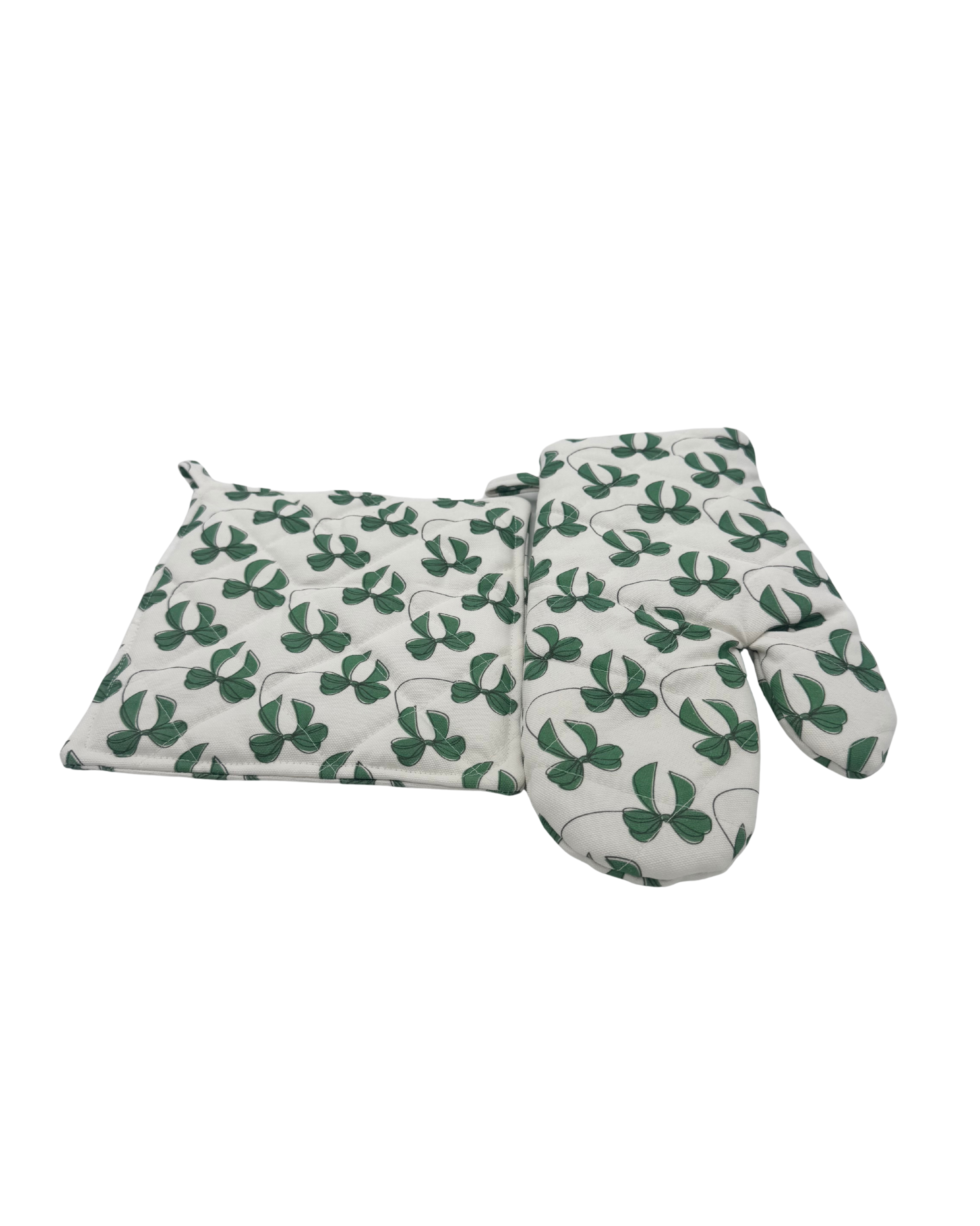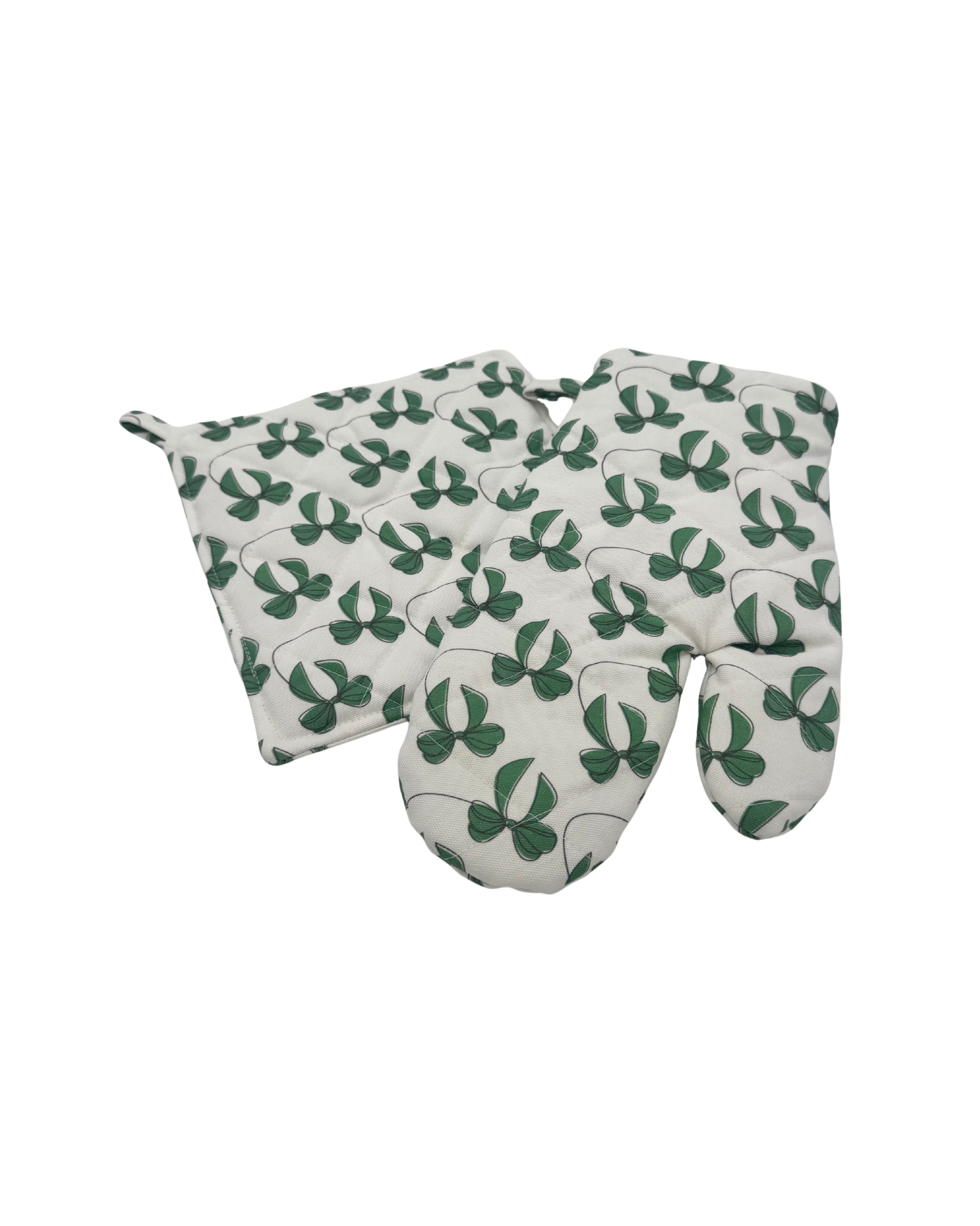 Yeşil Kurdele Desenli El Yapımı Fırın Eldiveni